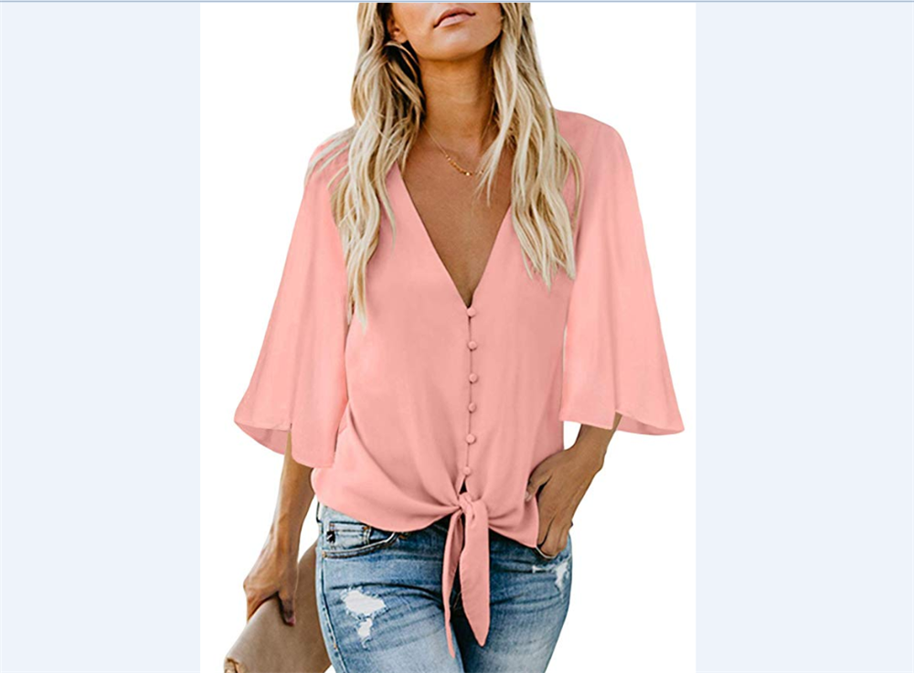 Blusa Feminina casual folgada com amarração, abertura em botões , manga morcego e gola V.
