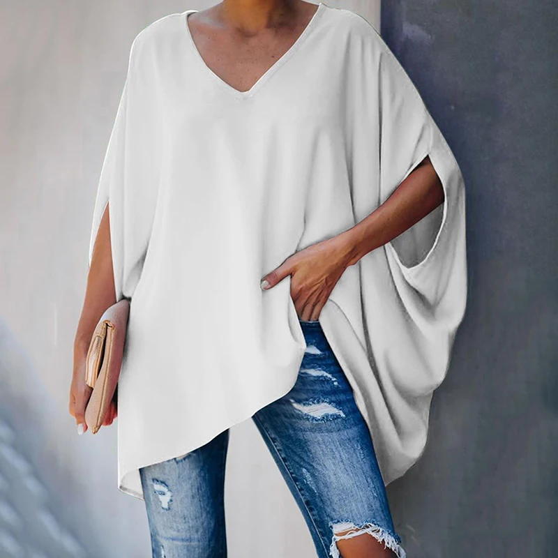 Blusa de Manga Morcego Com Decote Em V, tamanho ampla.