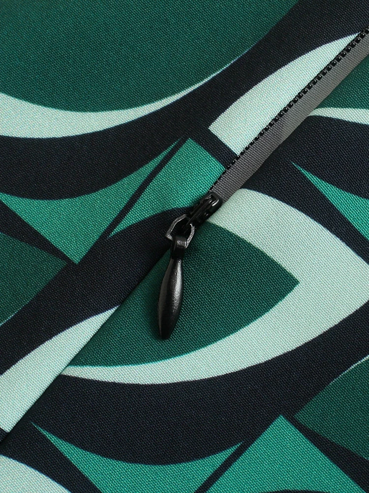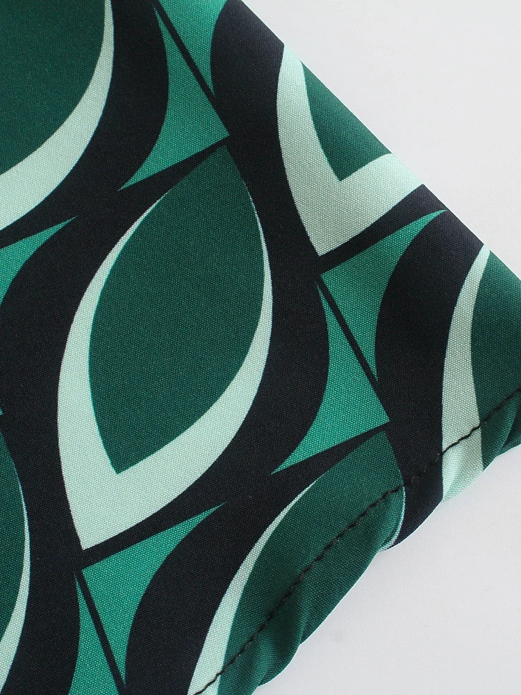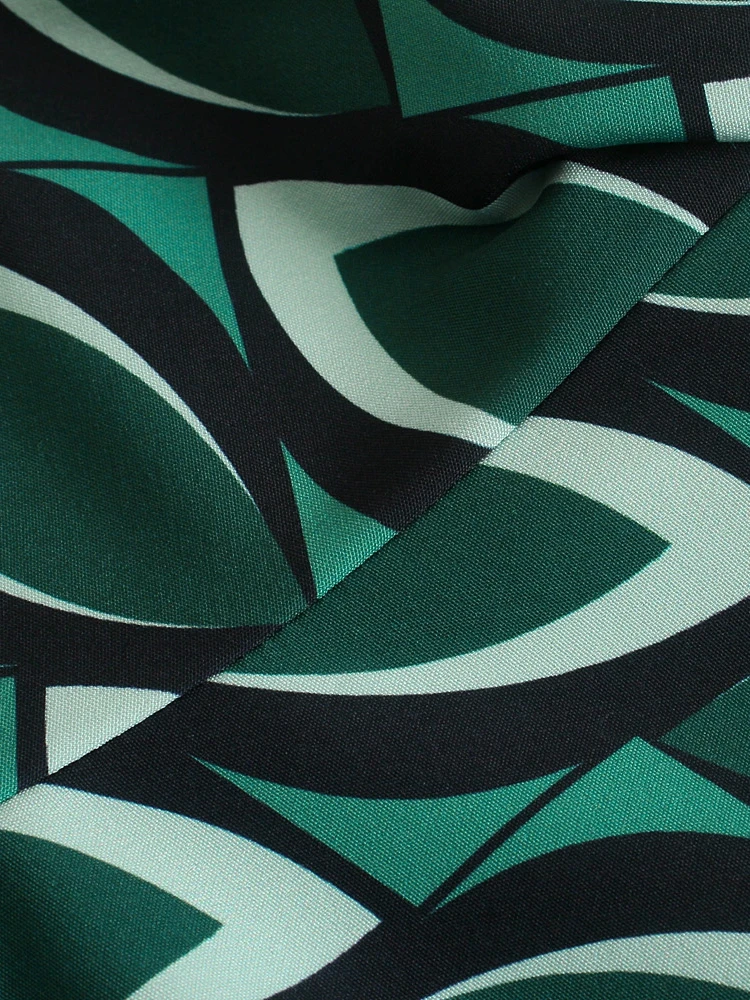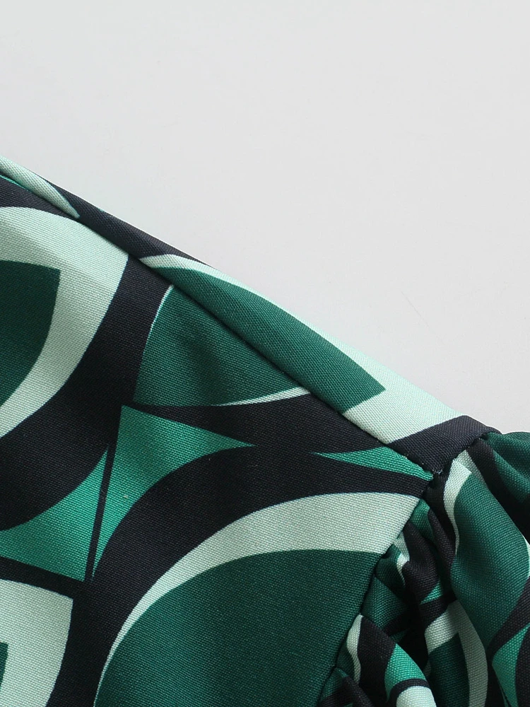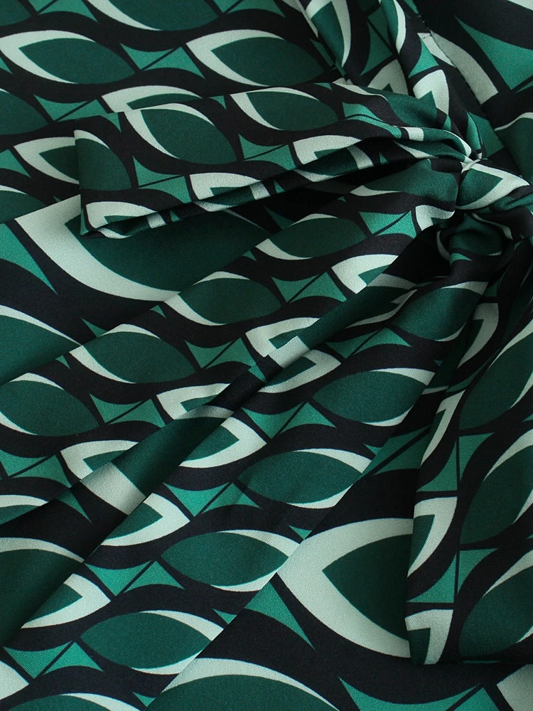 Vestido estampado Verde evasê,manga curta , abertura de zíper na parte de trás até a cintura , acompanha cinto do mesmo tecido .